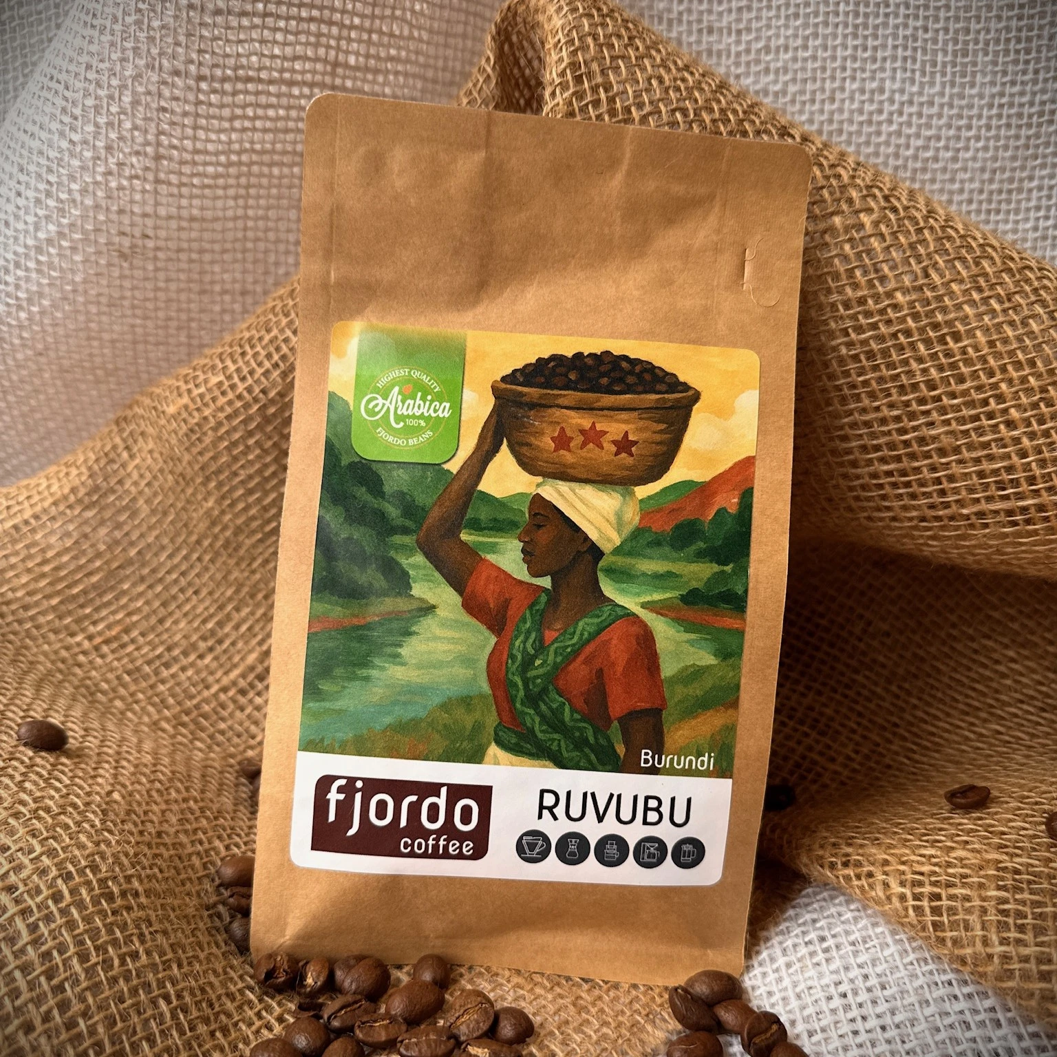 Fjordo Umba pochodzi z regionu South Kilimanjaro w Tanzanii, gdzie dojrzewa na żyznych, wulkanicznych glebach. Uprawiana w cieniu drzew bananowców i zbierana ręcznie, zachowuje naturalną słodycz oraz czystość smaku. Średni stopień palenia podkreśla klasyczny, zbalansowany charakter kawy.